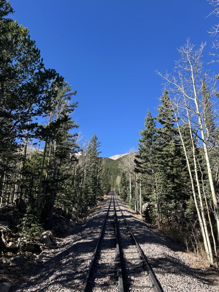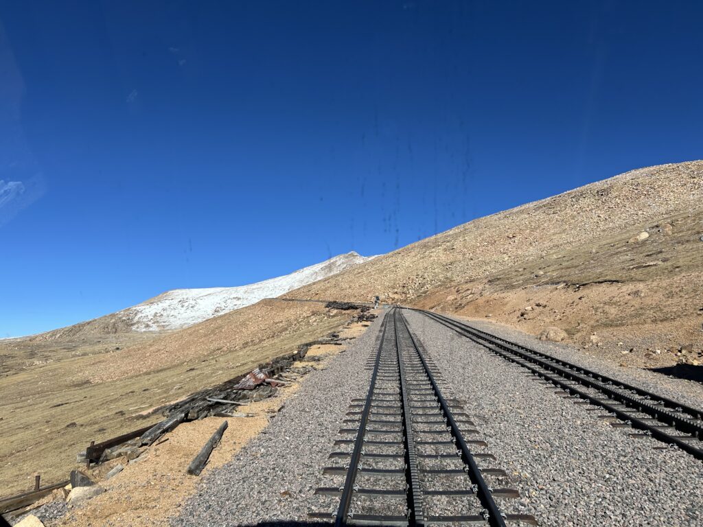 We had tickets to ride the Cogg Railroad to Pike’s Peak. Unfortunately, due to cold temps and wind at the Peak we had to stop short but well above the tree line. It is very eerie to see the tree-less view.