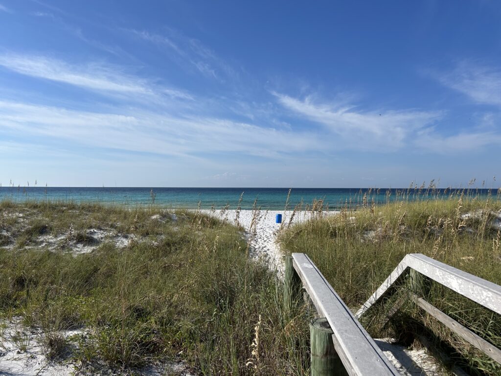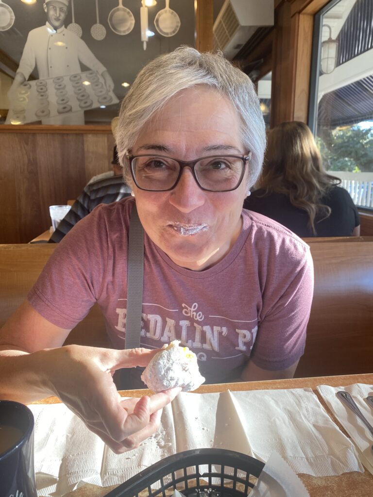 Of course we can’t sit still too long and make a road trip to visit Nauti Nerds in September. She is looking much better with the barnacles scraped off! The scraping process was rough and she will need her bottom painted with the special “anti-fouling” paint mentioned previously. This paint job will also be delayed until just before launching since the paint starts “out gasing” immediately upon application. We take the long way back to Texas and  detour through Destin. We spent an impromptu day at the beach and it was glorious. Timing was perfect since it was after summer, school was in session and it was too early for “snow birds” to arrive. When in Destin a visit to Donut Hole is a must. I love their key lime filled donut covered in powdered sugar! YUM!