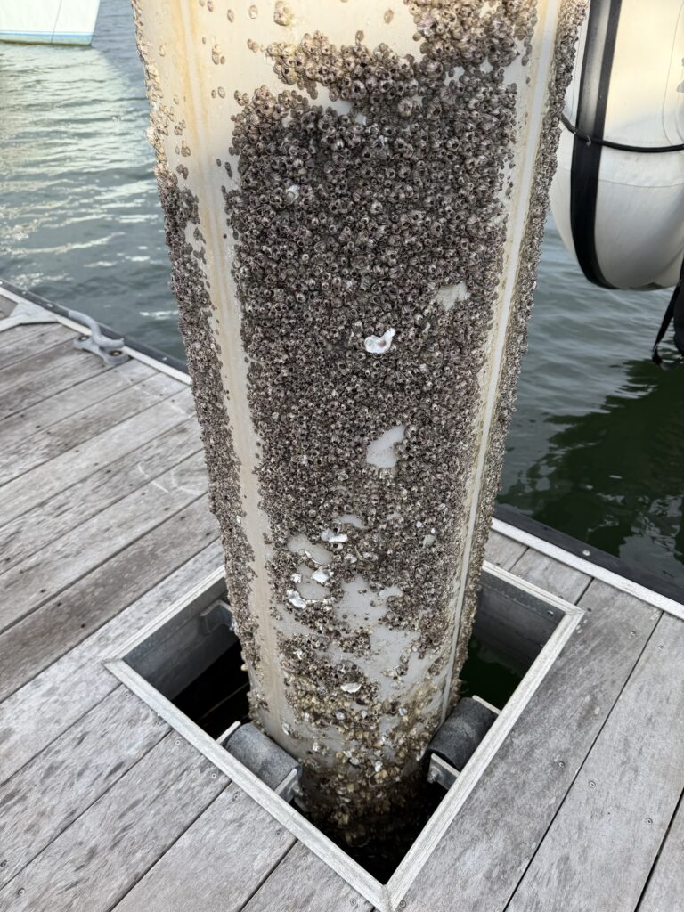 Our original marina reservation could not accommodate our request for an easy access slip so we switched to Charleston Harbor Resort and Marina (CHRM). The docking process went smoothly given we were a bit rusty and weather was not favorable. It was very cold, rainy and windy. The water was slapping the docks and produced foam from the violent movement. We were located at the farthest point possible from marina land and facilities. Normally we welcome this level of exercise but given the weather, it was miserable even with multiple layers, hood and gloves. However, these conditions encouraged a quick pace! First steps on the dock from our boat I wasn’t paying close enough attention and I fell. Luckily, I rolled and no single body part had full impact. There were still scrapes and bruises with soreness taking a full 4 weeks to fully disappear. MY Apple watch detected my fall and offered to call for help which is reassuring. Luckily the boat Captain was there to assist. 😉
