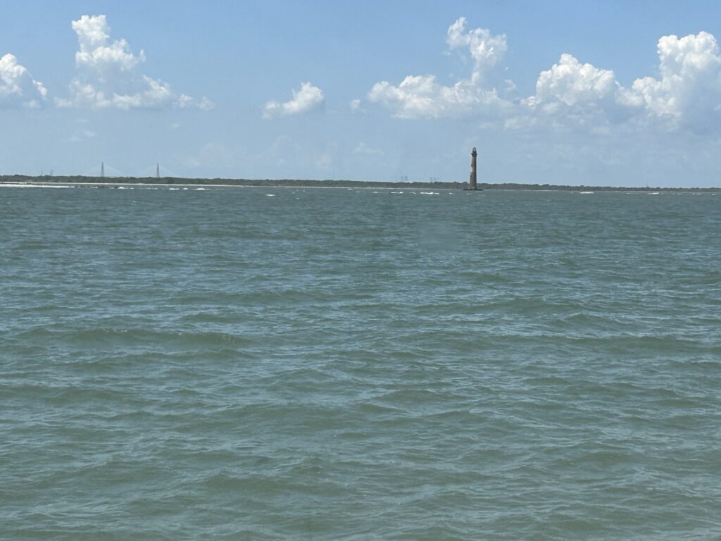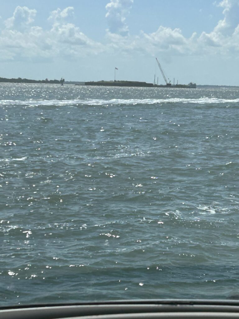 Waves were a bit larger than predicted so the ride was not as smooth as we would have preferred. However we were able to reach Charleston in one day. Charleston Harbor is crazy busy with commercial and pleasure craft. We pass Morris Island Lighthouse and Fort Sumter on our way.