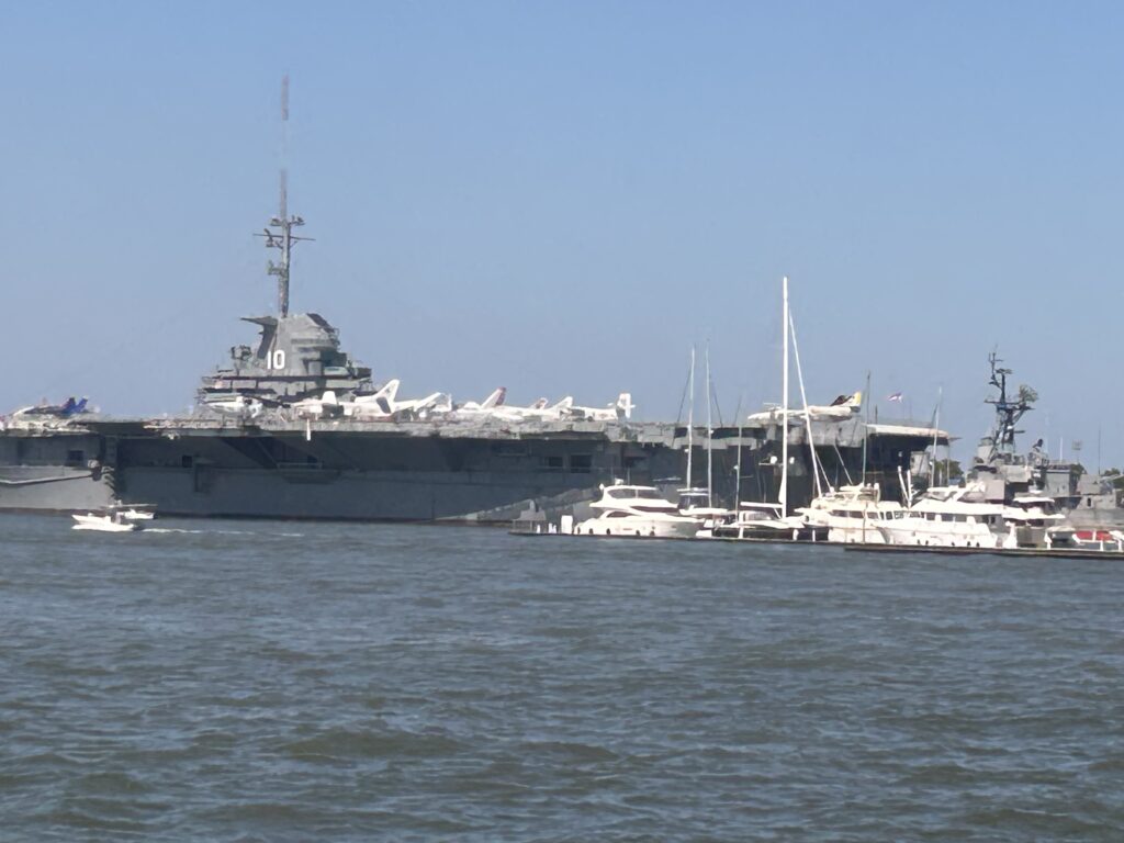 Charleston Harbor Resort & Marina is on our right as well as the USS Yorktown aircraft carrier.