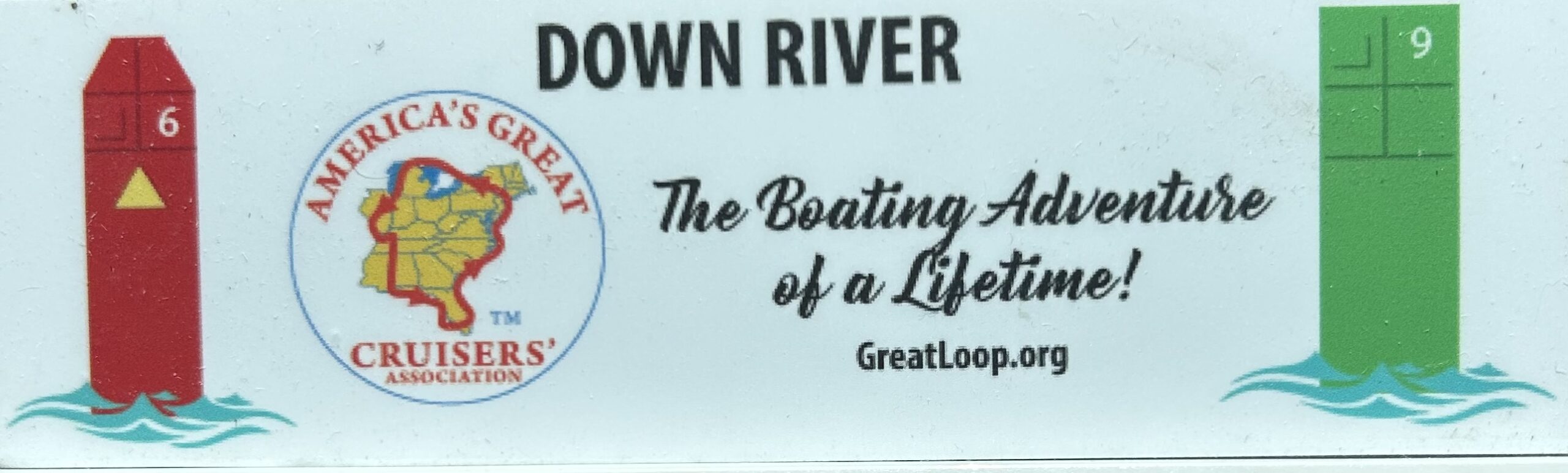 Twice today our mile markers switched from “up river” to “down river”, which equates to red on right / green on left TO red on left / green on right. Since these markers are our road signs it is important to keep track and most Loopers have some indicator on their helm. Sometimes it is just a popsicle stick with red and green marks on each end. Ours is ”swag” from an AGLCA conference.