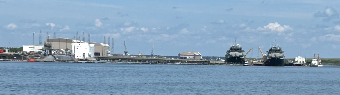 We passed a docked submarine and two navy ship protectors. A security boat was patrolling in front of all three to ensure no one gets close. 😳 Don’t slow down, don’t take too much interest, stay in the channel on the charted course and all is fine!