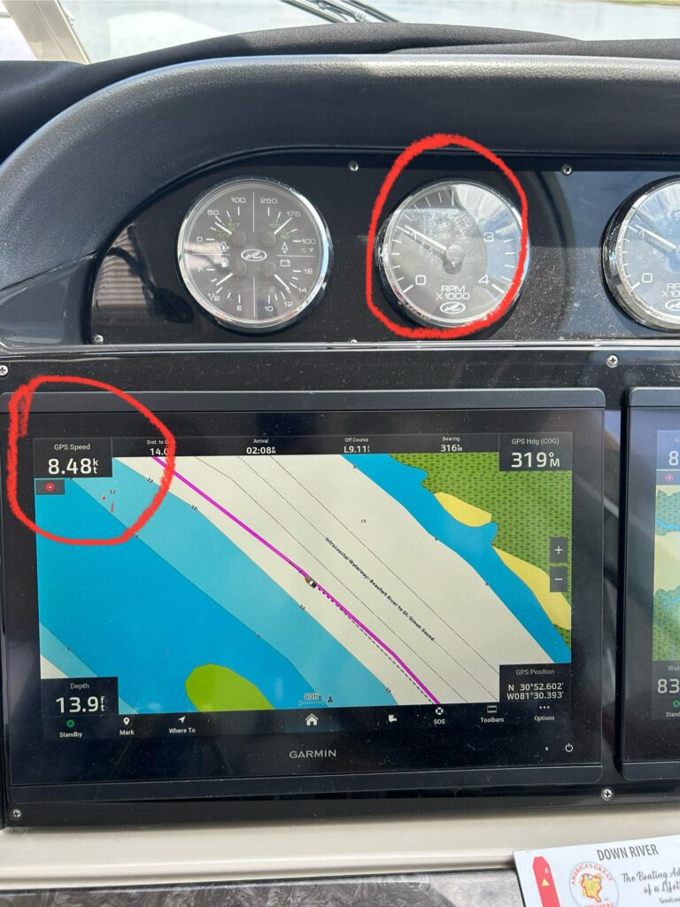 We experienced an incredible tailwind obtaining 8.5 knots/hour with just over 1000 RPMs. Assumption is ocean tide is receding and pulling water northward and out the inlet. Woohoo! Great mileage for a while.