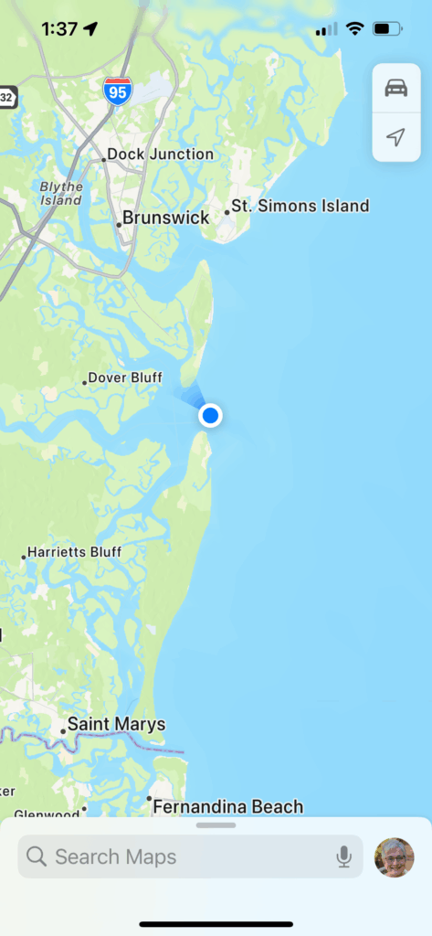 The intracoastal leads us out to the Atlantic briefly to avoid shallows and we make another sharp left as we proceed to Jekyll Island.