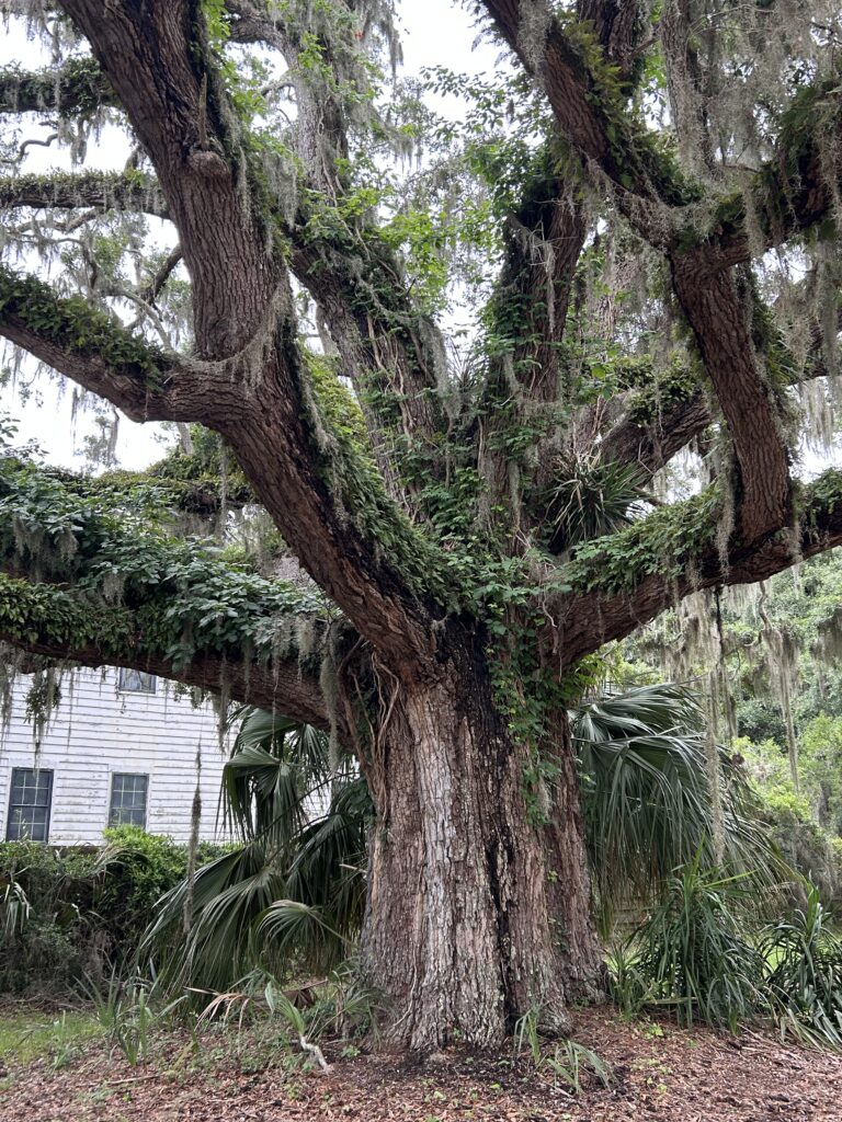 Happy hour on the boat is wine/beer and French bread with seasoned olive oil for dipping. Dinner is one of my famous salads. Afterward we go for a walk to find the on-site restaurant called Marker 107. There are some magnificent old live oak trees on property. However, we are clearly in the middle of nowhere! This marina does not have pump out, a laundry, restroom, or shower bathhouse amenities, but fuel and water are all we need.